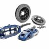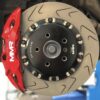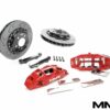 The calipers are mated with a set of our high-performance 355mm diameter with 32mm thickness fully-floating high cast carbon two-piece disc assemblies giving a far higher friction coefficient compared to normal steel rotors. These requires a minimum of 18″ wheel.